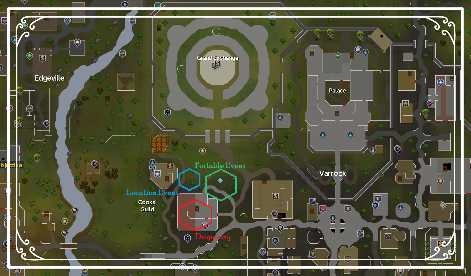 Hieronder de map van Runescape. Je kunt hier zien waar de portable events plaats zullen vinden!