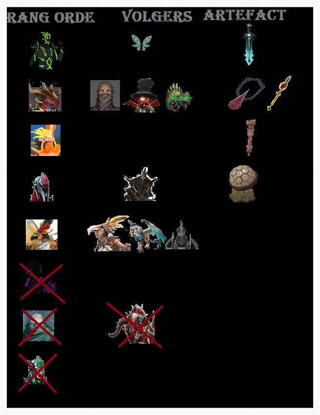 De personages van the saradomin flag met een kleine beschrijving